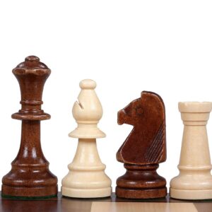 Chess pieces Staunton 3. Natural and brown stained Shima wood. Weighted and covered with felt. King’s height 76 mm.  Packed