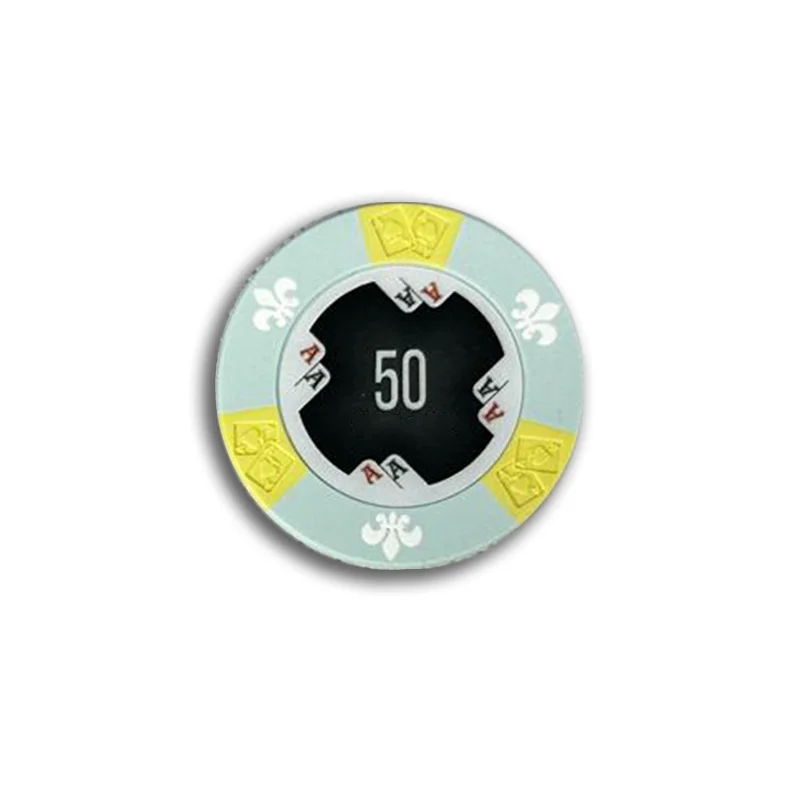 Our Aces Poker Chip is a new chip design of the Aces series, crafted from premium clay-composite material for an excellent gaming experience. Elevate your poker nights with these high-quality sticker chips that offer both durability and authentic feel.