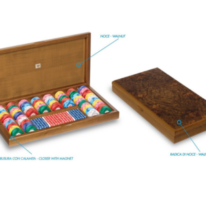Chips box made of briar walnut wood, complete with chips with a matte finish that gives a pleasant feeling of