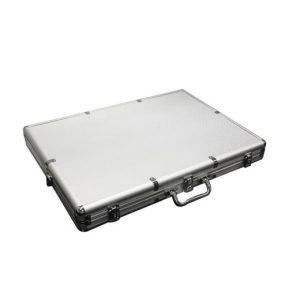 Poker chip set in silver color metallic case,  including 1000 Monte Carlo 14gr chips, two decks Lazar playing cards 100%
