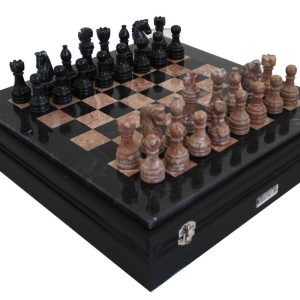 BLACK AND ANCIENT PINK MARBLE CHESS SET LARGE 1021