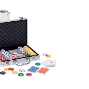 Aluminum case with 300 Chips with value Package Contents: 300 Chips, 2 Magic Byke Poker Decks, 5 Ivory Common Dice.