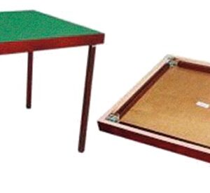 Playing cards Table. Dimensions 89 x 89 cm. Wood with brown finish, top green felt. Foldable legs.