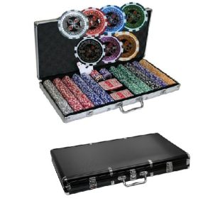 Poker chip set in black color metallic case,  including 500 Monte Carlo 14gr chips, two decks Lazar playing cards 100%