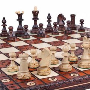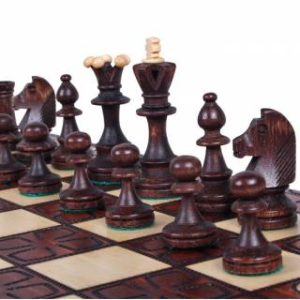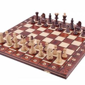 Mahogany Chess set 40x40cm (Medium) with Staunton Chessmen 7,7cm King, square size 4x4cm. It comes as a set in wooden