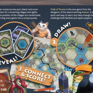 Trails of Tucana is a flip-and-write game from the creators of Avenue and Doodle City that is quick and easy to play, but has enough