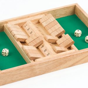 Shut the Box dice game double 9 Double edition, which enables to play against each other. Wooden case, covered with